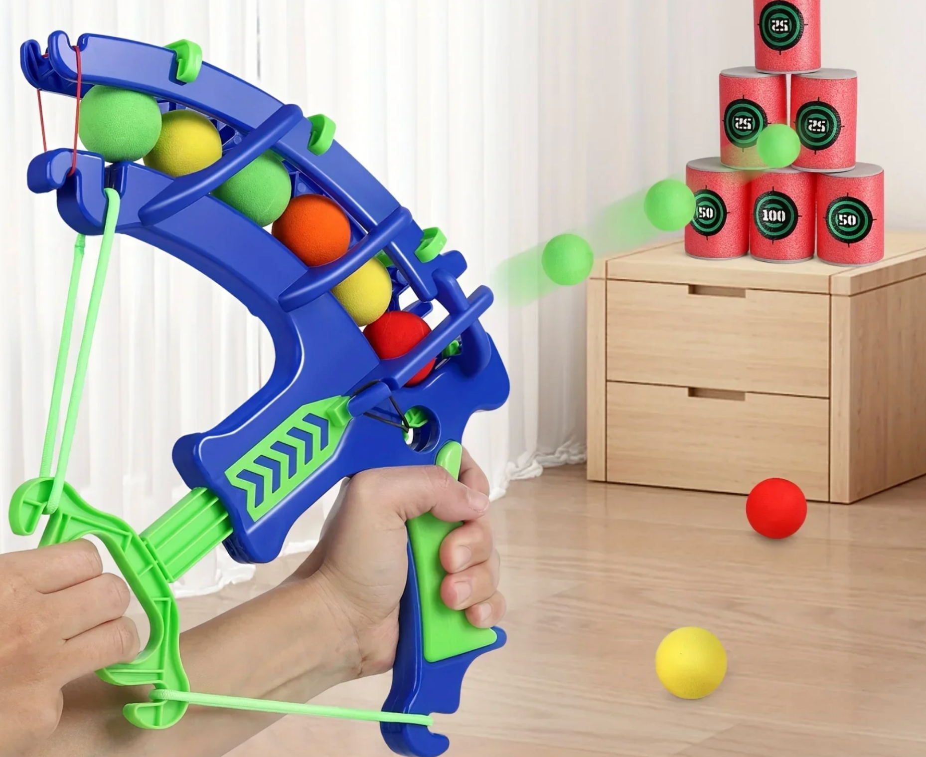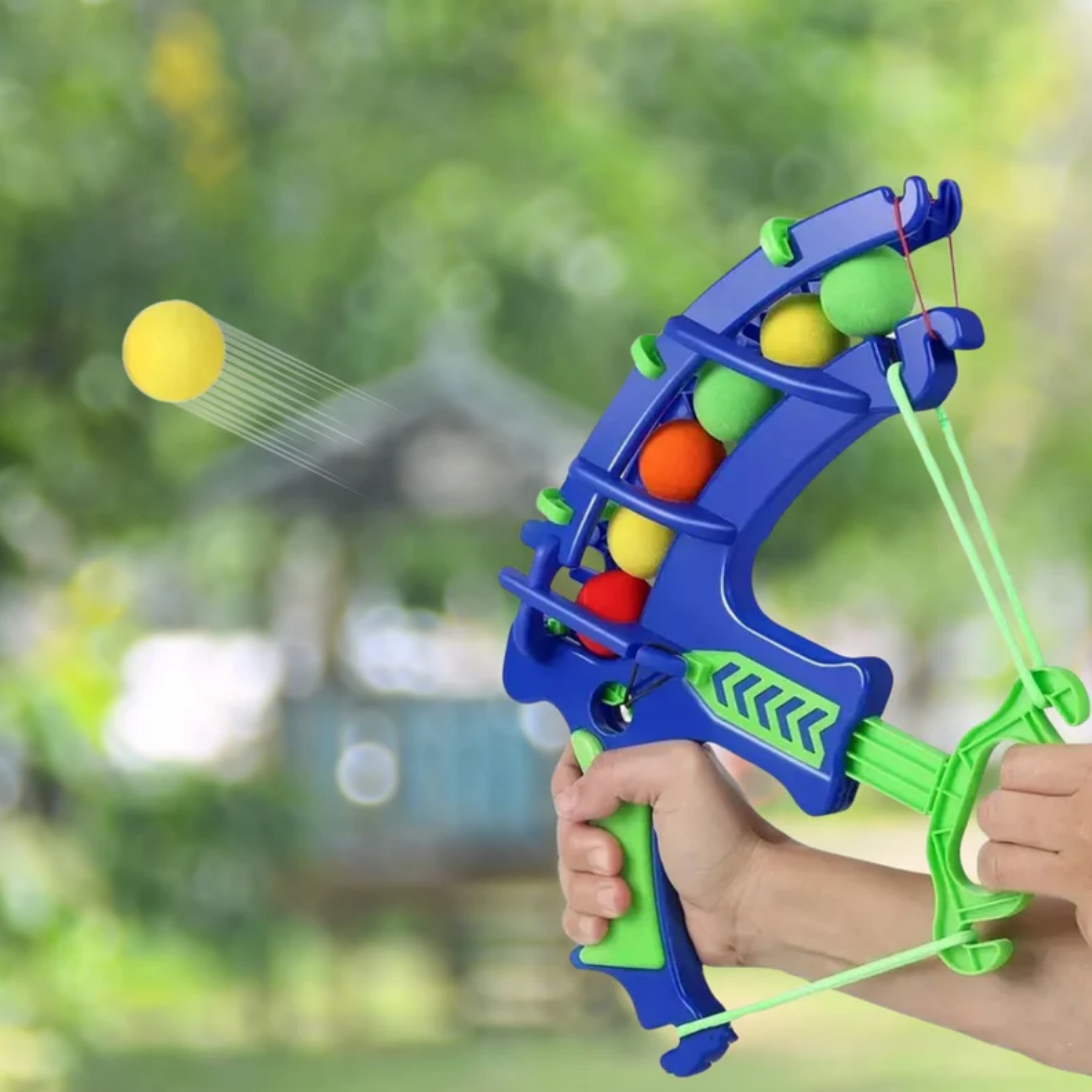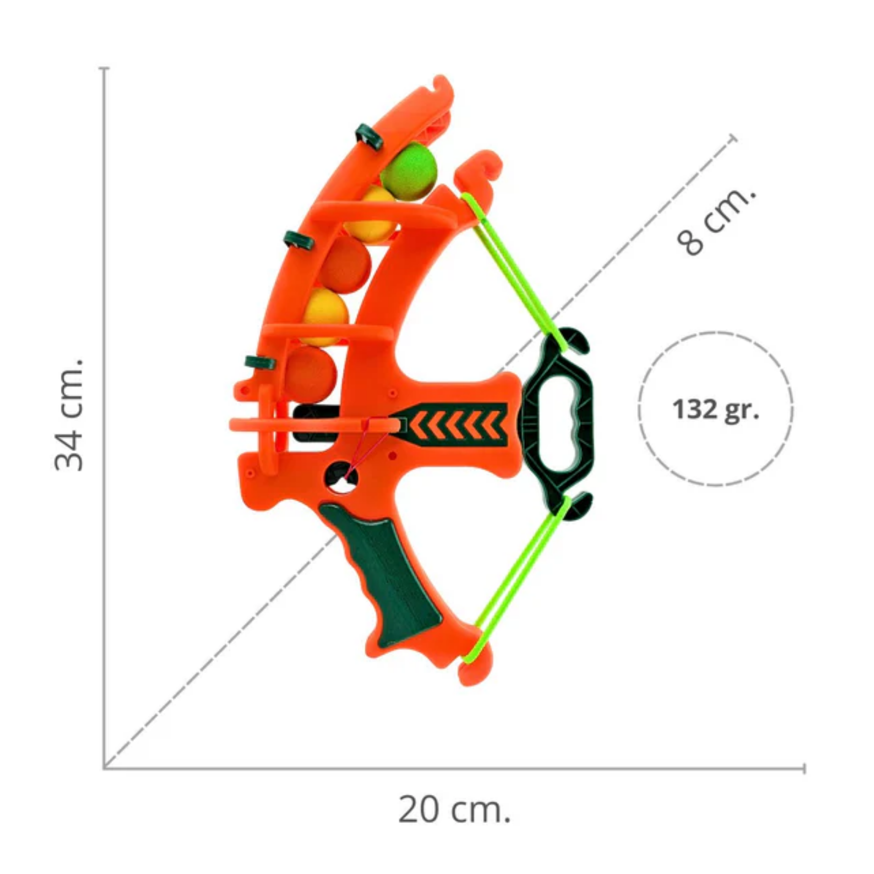 El arco viene con 5 bolas de goma EVA que se lanzan tensando el hilo como un arco de verdad. No hay proyectiles duros ni piezas peligrosas, por eso es ideal para jugar con libertad y sin miedo. Perfecto para tardes en casa, al aire libre o en cualquier reunión familiar.