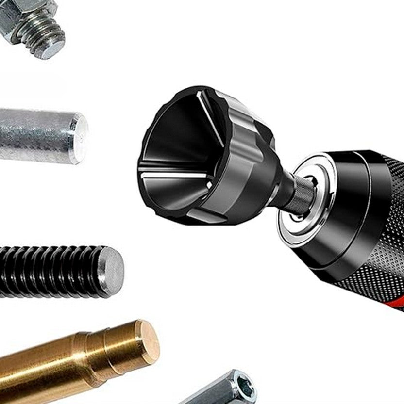 Además de achaflanar y desbarbar, puede reparar pernos dañados, ajustar tuercas y trabajar sobre acero, latón, aluminio, madera, plástico o incluso fibra de vidrio. Es la solución ideal para mantenimiento, carpintería, herrería o talleres mecánicos que requieren eficiencia con precisión milimétrica.