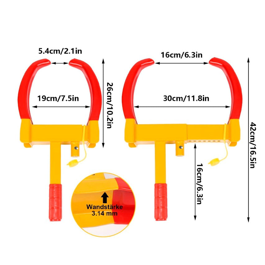 Con esta cerradura de tenaza antirrobo podrás proteger tu rueda en segundos. Su diseño ajustable se adapta a distintos tamaños de neumáticos, bloqueando por completo el movimiento del vehículo. Olvídate de preocupaciones y asegúrate de que tu auto, moto o remolque estén siempre bien asegurados.