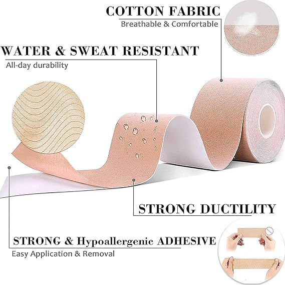 Esta cinta no solo es perfecta para levantar el busto, sino que también puede usarse en cualquier parte del cuerpo que necesite soporte adicional. Ya sea para mantener tus pies cómodos en zapatos incómodos o para proteger tu tejido muscular durante el ejercicio, la Boob Tape es versátil y práctica.