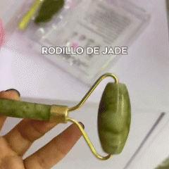 Hecho 100% de piedra jade de verdad (no plástico pintado), tiene ese toque frío perfecto que ayuda a reactivar la piel en segundos. No necesita pilas, enchufes ni apps: solo tú, tu tiempo, y el gusto de cuidarte sin apuros.